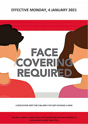 A $200 on the spot fine can apply for not wearing a mask. Children under 12 and those with exemptions are encouraged to wear masks where practical